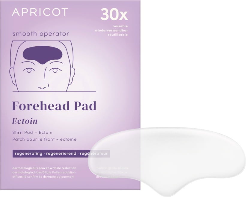 Il pad per la fronte Ectoin di APRICOT offre un trattamento intensivo e duraturo per la pelle della fronte grazie all'ectoina naturale. È realizzato in silicone di grado medico e può essere riutilizzato fino a 30 volte. Il pad protegge anche dalla luce blu. Le rughe sottili possono essere levigate e ridotte.