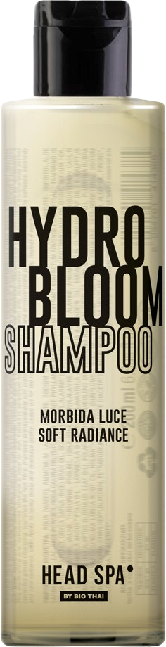 L'Hydro Bloom Shampoo di Bio Thai è un vero trattamento wellness che nutre in profondità le fibre capillari e le idrata intensamente. Agisce in modo particolarmente delicato sia sul cuoio capelluto che sui capelli, migliorandone struttura e resistenza. La texture ricca e cremosa deterge delicatamente rispettando il cuoio capelluto. La sinergia di aloe vera e olio di crusca di riso nutre e protegge la struttura del capello, migliorandone elasticità e lucentezza. Gli estratti di rosa canina, amla, equiseto, tamarindo e frangipani svolgono un'azione antiossidante e remineralizzante, contribuendo a rafforzare la superficie del capello e a donargli maggiore corpo e luminosità naturale. Una miscela di ingredienti biomimetici (sodio PCA, sorbitolo, squalano vegetale, fitosteroli e aminoacidi essenziali) aiuta a mantenere l'idratazione fisiologica, rinforza la barriera cutanea e favorisce la morbidezza. La formula rigenerante restituisce vitalità e setosità anche ai capelli trattati o danneggiati, rendendoli più facili da pettinare e riducendo rottura e doppie punte. Gli oli essenziali di patchouli, lavanda, geranio, pino, eucalipto, curcuma e frangipani creano un'esperienza olfattiva esclusiva e tonificano il cuoio capelluto.