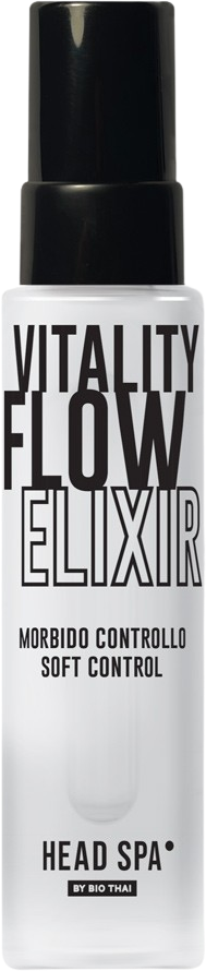 Il Vitality Flow Elixir di Bio Thai trasforma la routine quotidiana di cura dei capelli in un vero rituale wellness. La texture leggera si applica facilmente sui capelli tamponati o asciutti, si assorbe senza lasciare residui e rende i capelli morbidi, luminosi e setosi. L'elixir disciplina i capelli ribelli, facilita lo styling, nutre, idrata e protegge intensamente. I capelli appaiono così più forti, elastici e vitali. Al centro della formula si trova la sinergia di aloe vera, acido ialuronico e preziosi oli vegetali di cocco e riso, che sigillano le fibre capillari e le proteggono dagli agenti esterni. Gli oli essenziali puri di ylang-ylang, lavanda e gurjum completano il trattamento con una profumazione delicata ed equilibrante, regalando una sensazione di armonia e capelli curati a ogni applicazione.