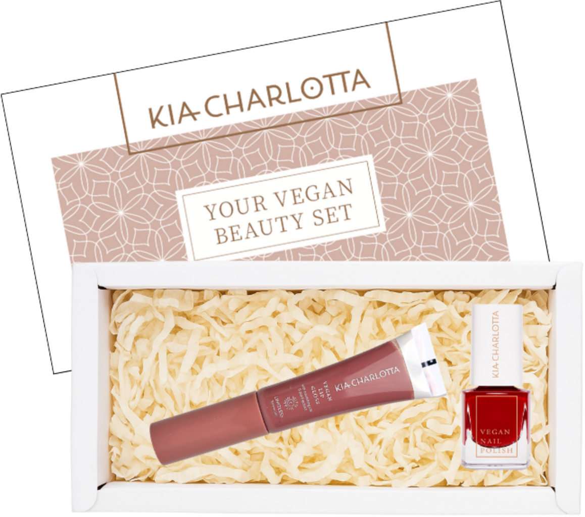 L'Amazing X-Mas Set di KIA-CHARLOTTA include un elegante duo labbra e unghie perfettamente coordinato per un effetto wow durante le feste. Il lucidalabbra vegano Glorious dona labbra meravigliosamente glitterate, mentre lo smalto per unghie fa brillare le unghie di un rosso intenso.