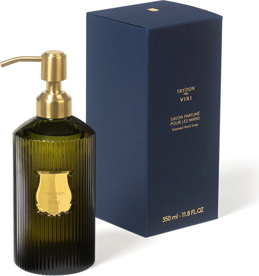 L'Hand Liquid Soap Vixi di Trudon non solo deterge delicatamente le mani, ma dona anche una fragranza unica alla pelle e al bagno. Il flacone in vetro è ricaricabile e rappresenta anche un meraviglioso e lussuoso elemento decorativo per impreziosire qualsiasi bagno o toilette.
